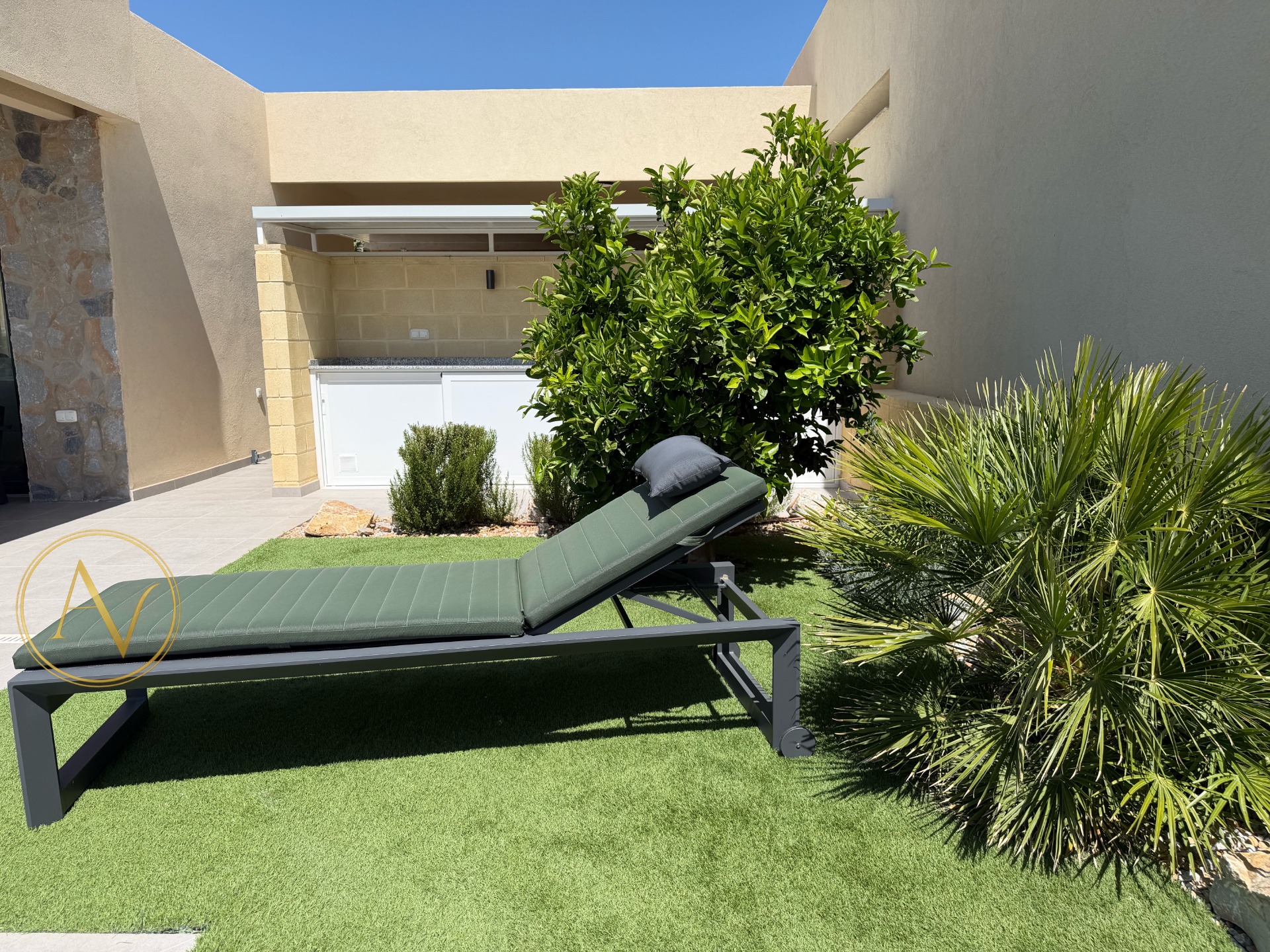 De tuin is volledig aangelegd en ontworpen om maximaal te genieten van het Spaanse klimaat: